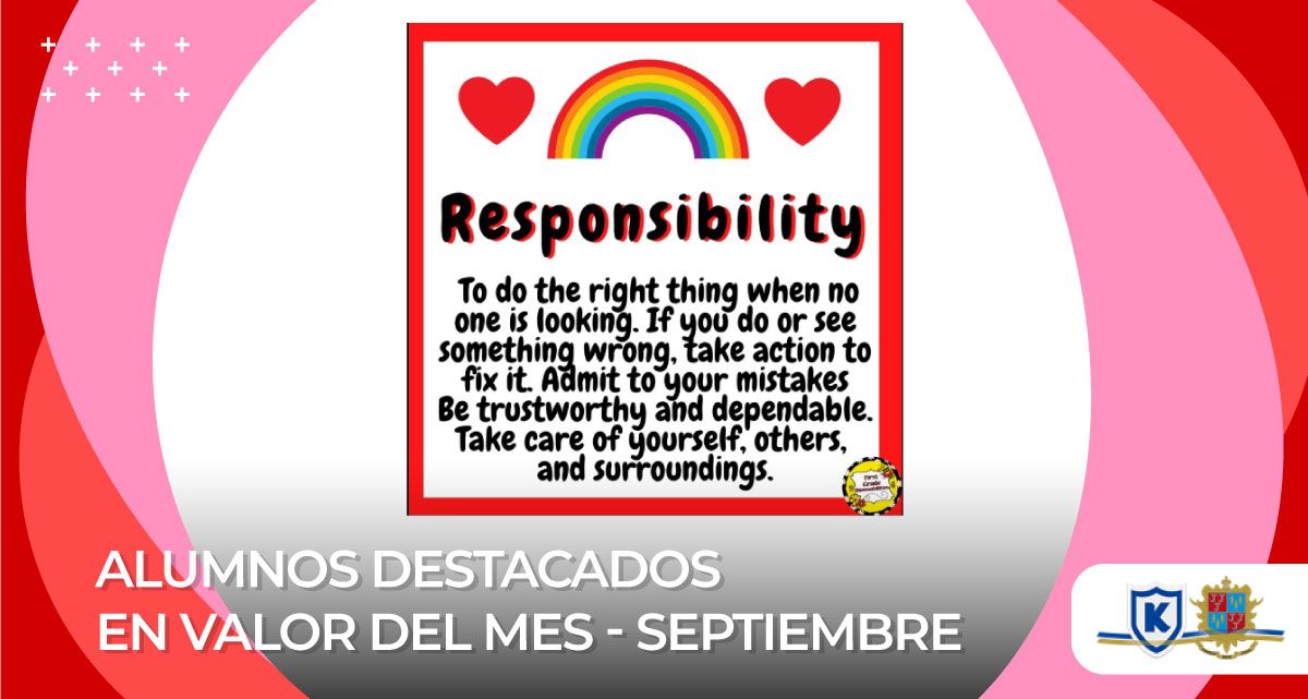 Durante el mes de septiembre, en nuestra comunidad escolar destacamos un valor fundamental para la vida: la responsabilidad. Ser responsable implica cumplir con los compromisos asumidos, cuidar de uno mismo y de los demás, y actuar con conciencia frente a las consecuencias de nuestras decisiones.